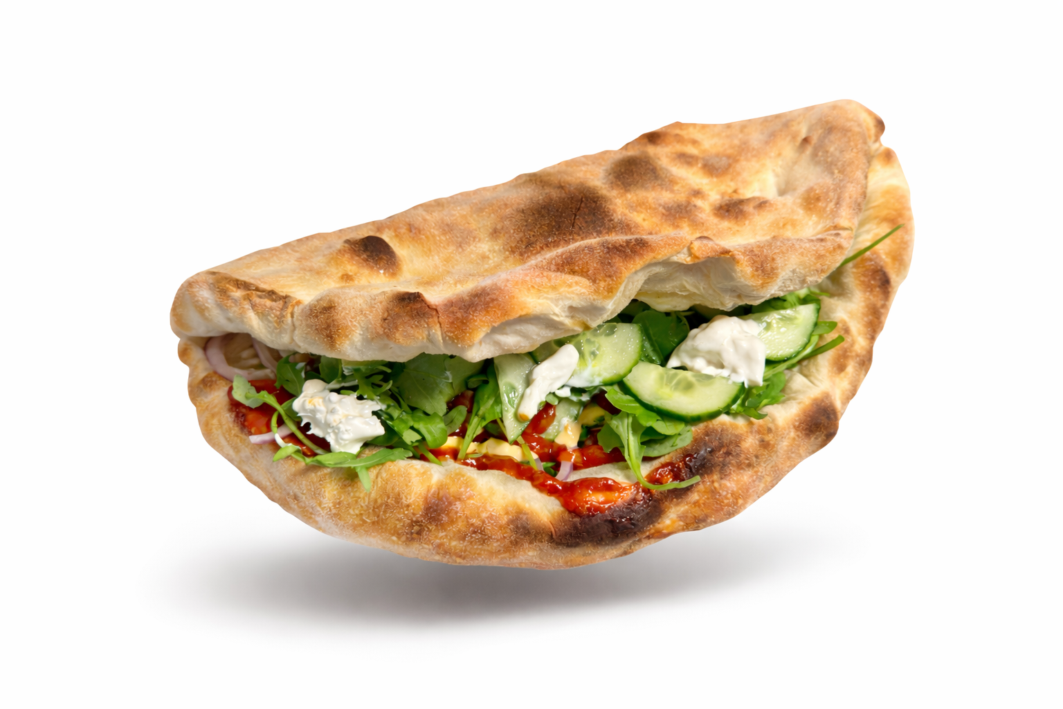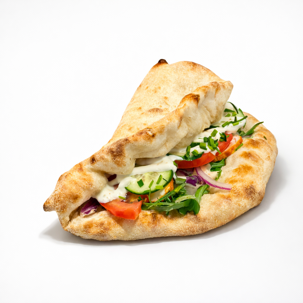 Wszystko to zalane kremowym, aromatycznym sosem Cezar i zamknięte w przepysznej bułeczce z naszego ciasta na pizze sos cezar, kurczak, mix sałat, rukola, zielony ogórek, pomidor, sos pikantne pomidory -