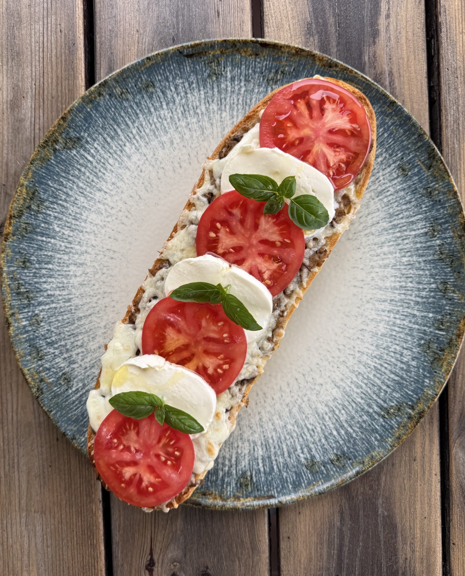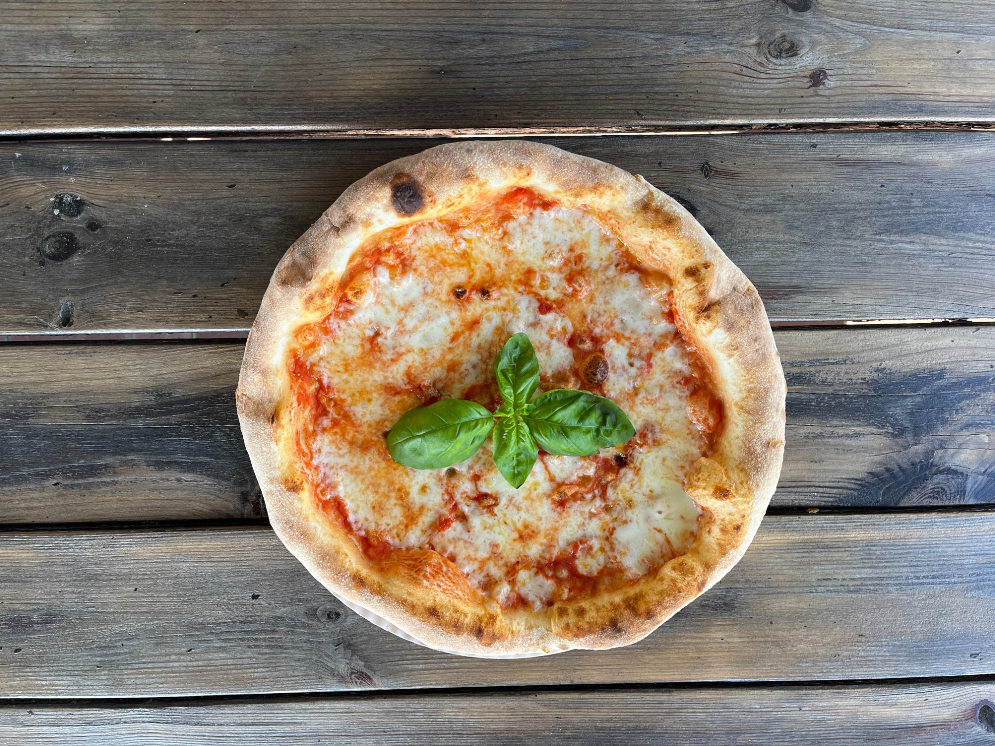 Ciasto na zakwasie z dodatkiem mąki pełnoziarnistej, sos z pomodrów pelati, mozzarella fior di latte