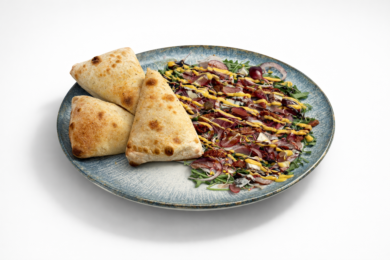 Nasze ciasto, bazujące na zakwasie, jest nie tylko chrupiące, ale i pełne głębokiego aromatu. Dzięki dodatkowi mąki pełnoziarnistej, pizza zyskuje wartości odżywcze, które sprawiają, że każdy kęs to czysta przyjemność.