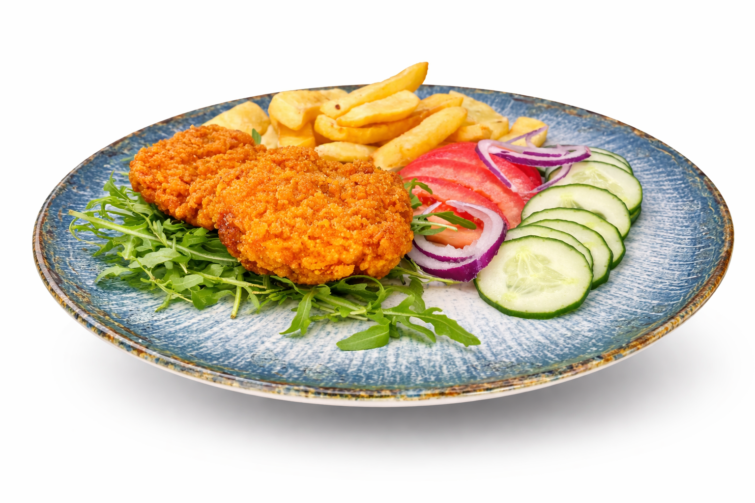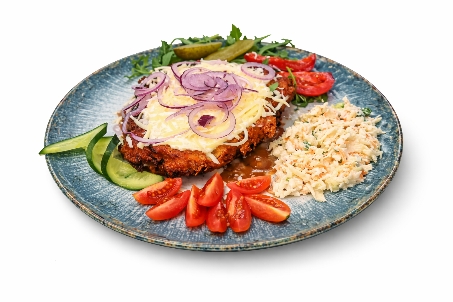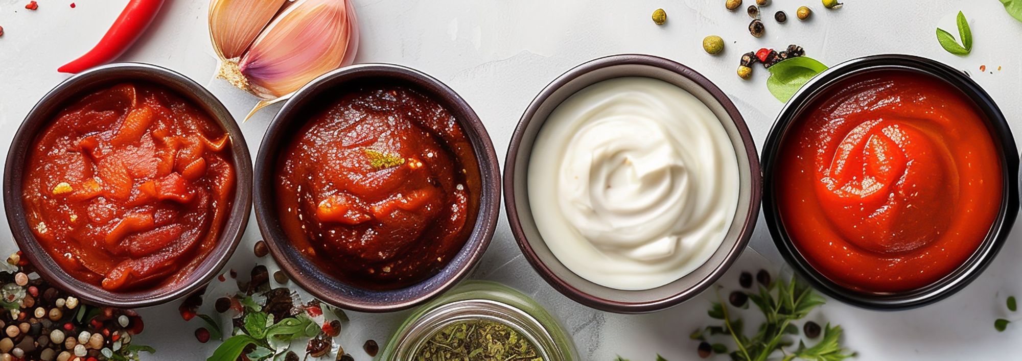 Sosy: Podwójna dawka charakteru – pikantny sos pomidorowy i kremowy sos czosnkowy. Opcjonalnie sos Cezar.