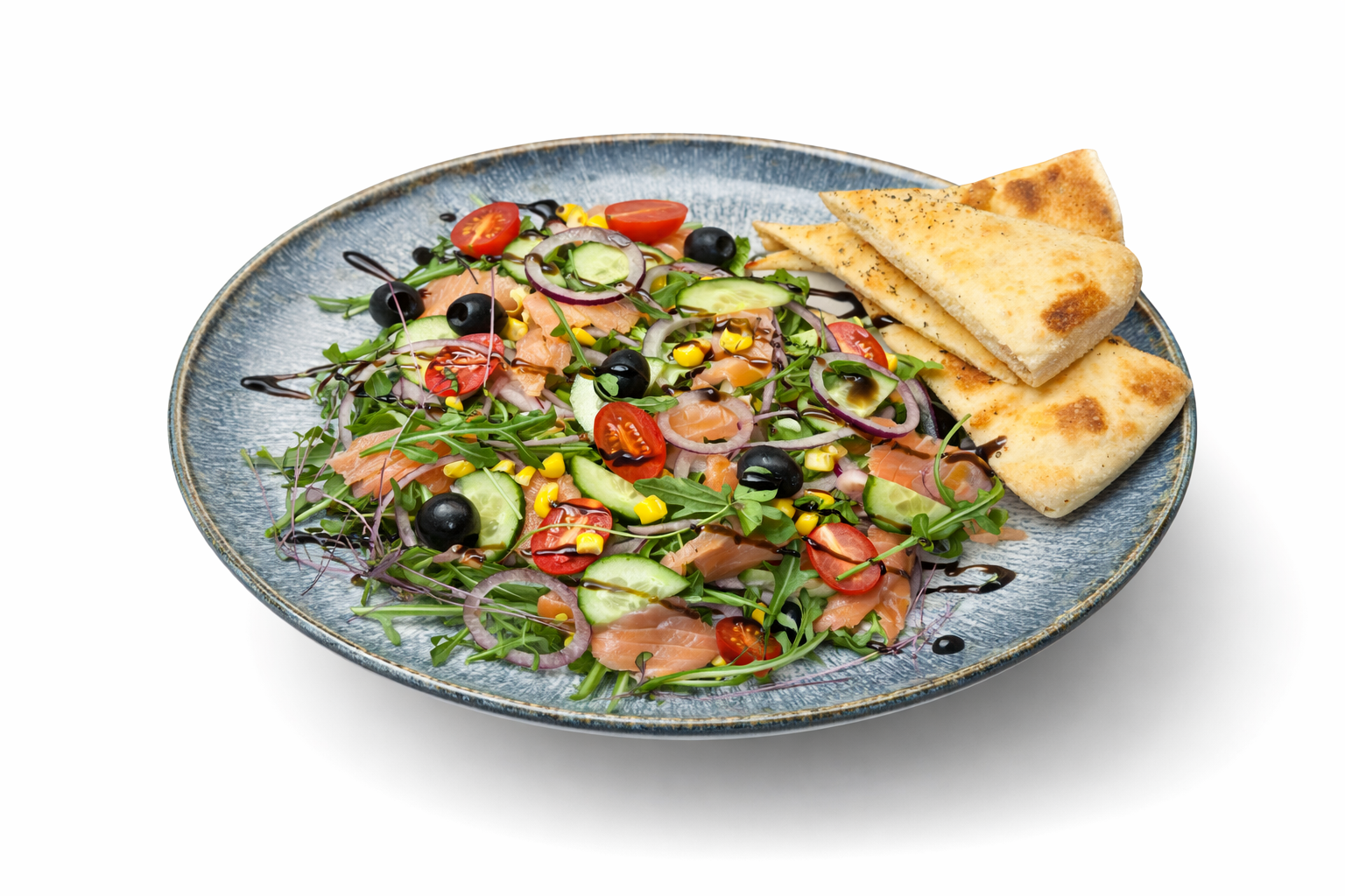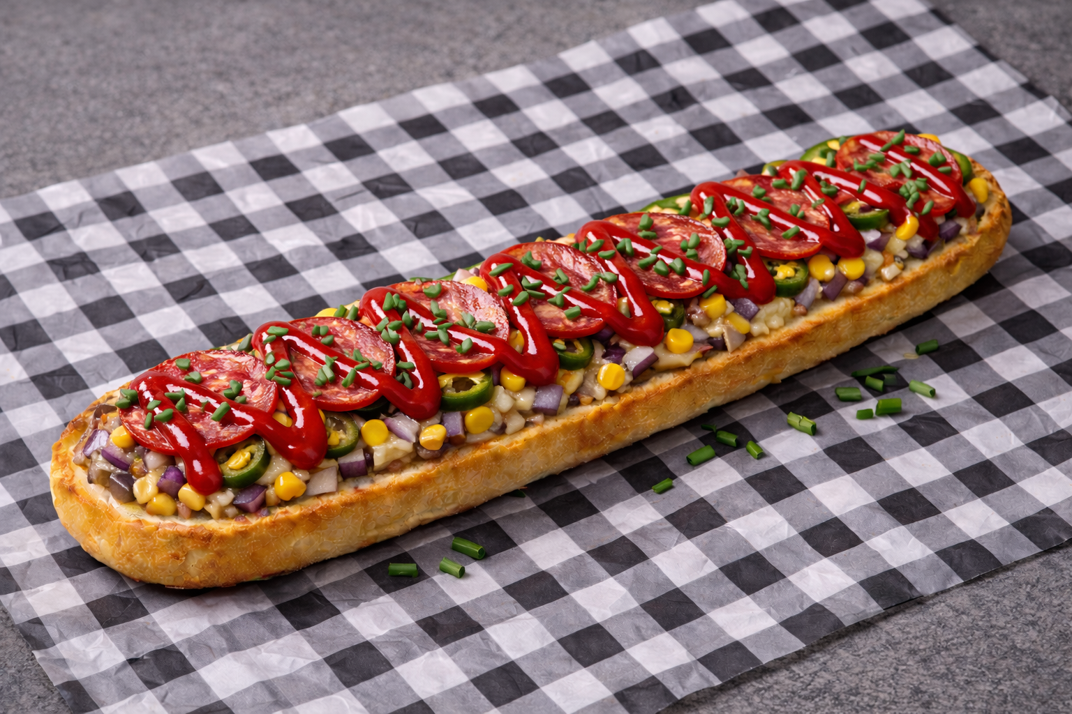 Warzywa: Ostre papryczki jalapeño, chrupiący zielony ogórek, słodka czerwona cebulka, świeża rukola i chrupiąca kukurydza.