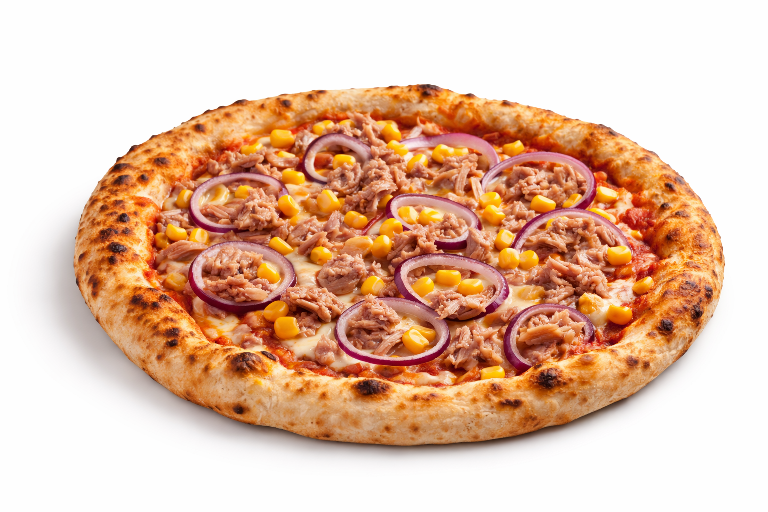 Głównym bohaterem tej pizzy jest tuńczyk, który w połączeniu z cebulą i słodką kukurydzą tworzy harmonijną kompozycję smakową. Każdy kęs pizzy Tuna to prawdziwa uczta dla zmysłów, idealna na lunch, kolację czy spotkania ze znajomymi. sos pomidorowy pelati, mozzarella fior di latte, tuńczyk, cebulka czerwona, kukurydza -