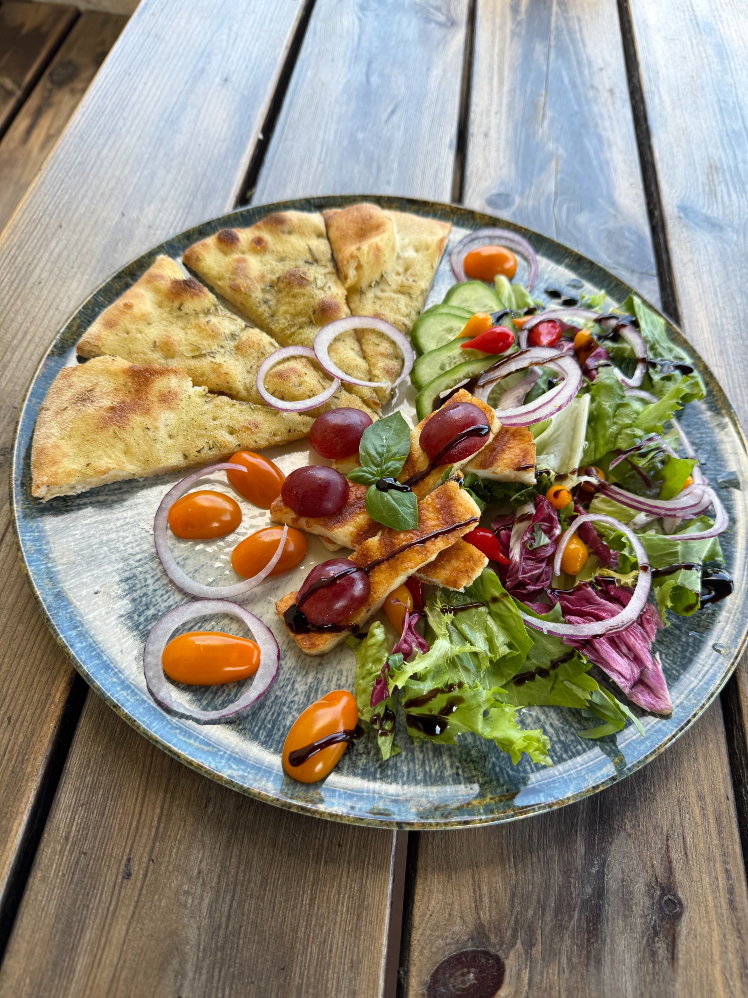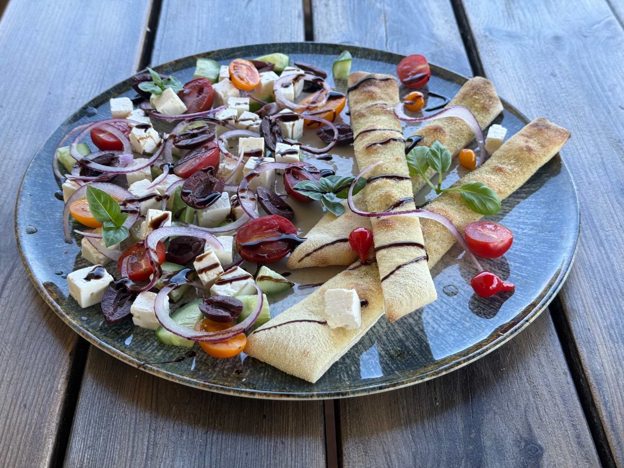 Znajdziecie na niej pyszny sos z pomidorów pelati 🍅, delikatną mozzarellę fior di latte 🧀, pikantne włoskie salami spianata picante 🌶, a także włoską kiełbasę z kalabrii n'duja, czerwona cebulka, jalapenio, mini mozzarella, oliwki kalamata 🧅 – wykończona rukolą i serem parmigiano reggiano, mozzarella fior di latte, sos pomidorowy pelati, parmigiano reggiano DOP, mozzarella mini kulki, salami spianata piccante, jalapeno, cebulka czerwona, rukola -